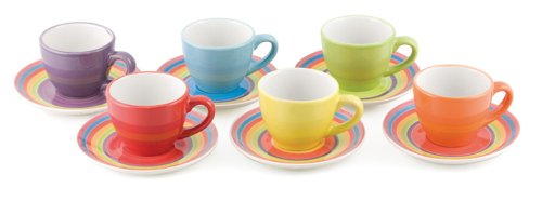 Villa d'Este Home 2166111 Sombrero Set 6 Tazzine Caffe' con Piattini, in Gres Smaltato, Dipinto a Mano, 6 Colori Assortiti